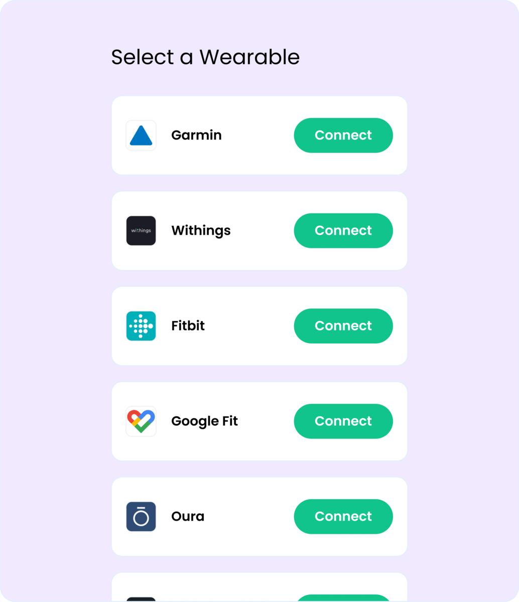 Instant connections to Freestyle libre, Garmin, Fitbit, Oura, Apple, Withings, Polar, Wahoo, Eight Sleep, Training Peaks, Suunto, Zwift, Google, Samsung, Tempo, Wear OS, Concept 2, Peloton and Others. We are adding more daily